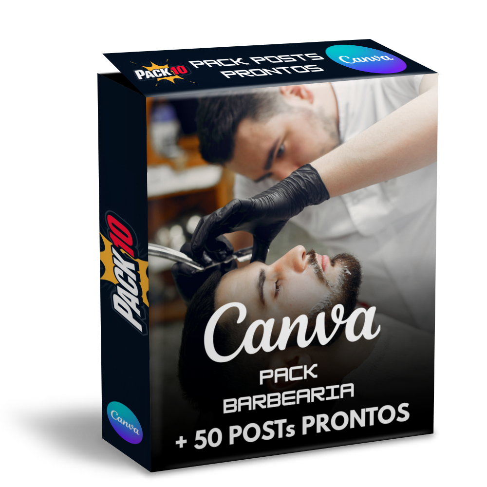Com o Pack 10 você recebe 50 posts editáveis no Canva para barbearias. Artes prontas para promoções, cortes masculinos e comunicação profissional nas redes sociais.